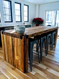 •Rustic, robust and reclaimed wood is used to make these one of a kind pieces of outdoor furniture. These are made with 3 inch thick of oaks and maples a superior hard wood made to last a lifetime. ...