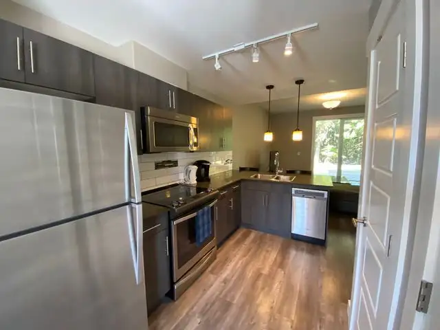 This furnished, 2 bedroom 2 bathroom townhouse is located at 308-110 Baxter Landing, Kitimat and is available August 1st, 2025. Comfortable and convenient low-maintenance home, perfect for a working professional or busy family. The modern kitchen features stainless steel appliances, a dishwasher, and a built-in microwave. This townhouse comes with a washer and drier in-unit and onsite parking and storage room. Lovely location in a quiet area, right near the local golf course. Rent is $2895.00 per month, not including utilities. Smoking and disruptive behavior are not permitted. Pets are negotiable but require an additional deposit.