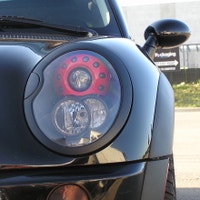 Logo JCW noir, rouge et blanc. Longueur 135mm. En métal. Autocollant double face. Peut aussi être vissé sur la grille avant.