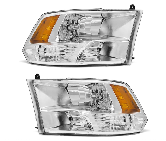 ADCARLIGHTS for 2009 2010 2011 2012 2013 2014 2015 2016 2017 2018 Dodge Ram Headlight Assembly compatible with 09-18 Ram 1500/10-18 Ram 2500 3500 Chrome Housing Amber Reflector Headlamp