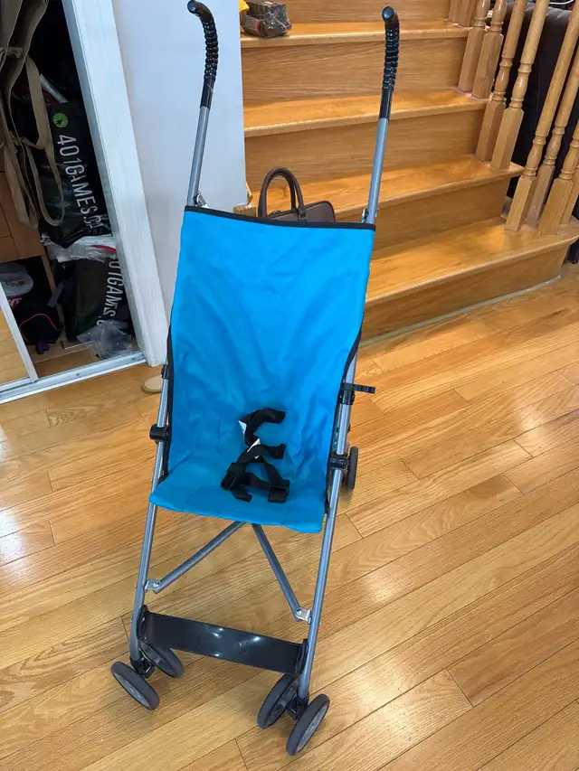 This lightweight umbrella stroller is perfect for travel or quick trips around town. It features a simple folding mechanism, making it easy to store and transport. The stroller is in good condition and ready for its next adventure.