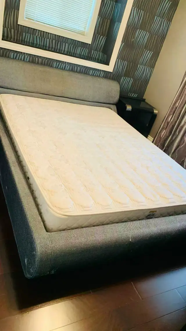 Excellent condition: Clean, well=maintained, sturdy bed frame&comfortable mattress with no odor