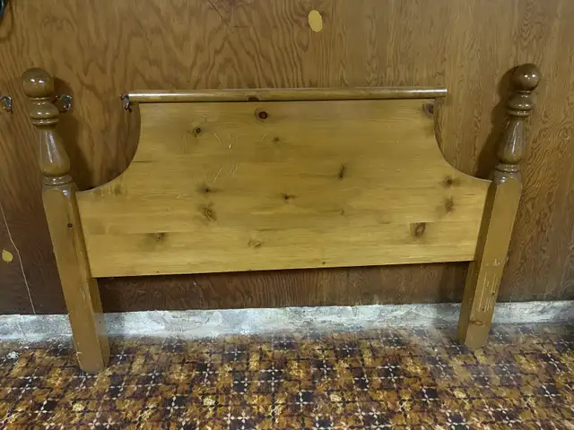 This is a headboard and metal bed frame. It is in used condition with some cosmetic wear * Headboard Material: Wood * Frame Material: Metal