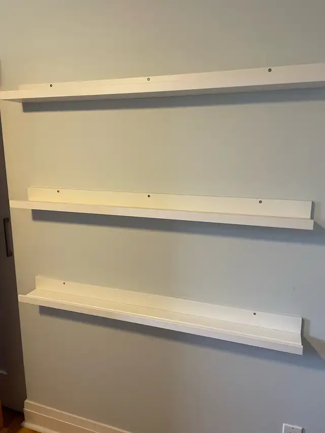 Three wall mounted ikea picture / book shelves. 45 1/2” wide. Float mounted to wall. Perfect condition.