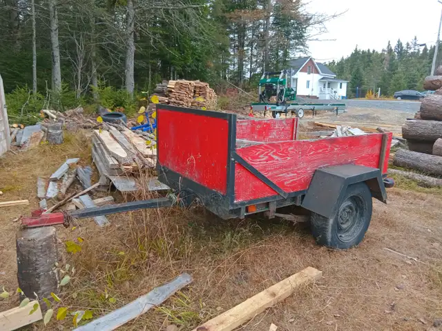 Remorque artisanale très solide, plancher en bois refait récemment. Dimensions: 44'' x 71''