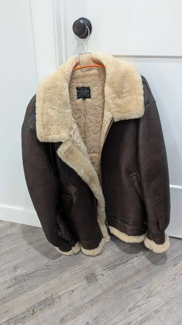 Vintage Type B3 U.S. Air Force shearling jacket. Made from 100% sheepskin. Size 54. Some distressing present in pictures. Leather is healthy and soft. No rips, stains or damage. Very warm and comfortable in the winter.