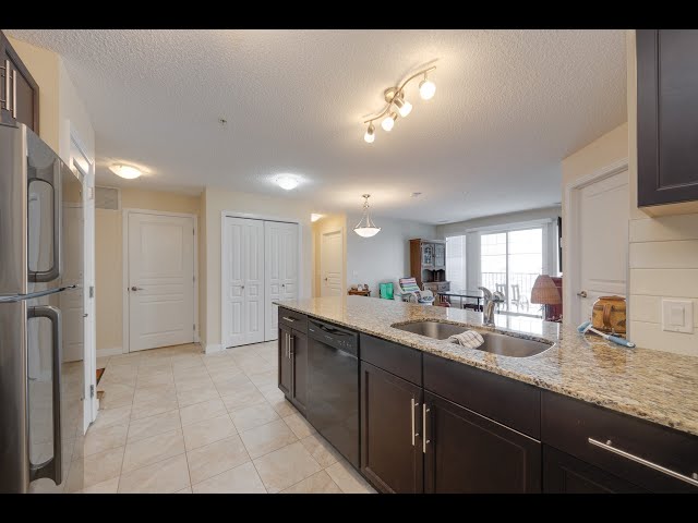 Light & Bright! Immaculate 2 bedroom, 2 full bath condo in the well-managed complex of Aspen Park Condos. Take the elevator up to your bright, mint condition unit. The kitchen is well appointed with ceramic tile flooring, a spacious, clean kitchen with granite counters, stainless appliances, espresso cabinetry & pantry. Light flows into the dining & living room area with laminate flooring, from a full wall of windows & patio door leading to the large balcony. There are 2 large bedrooms, on opposite ends of the unit for optimal privacy & quiet, with 2 full well-appointed baths. The primary suite is large enough for a king bed, and has a walkthrough closet to the ensuite. You'll never share machines again with your handy in-suite washer & dryer, with storage. This is a no smoking, no pet complex and is so clean! There's an exercise room & reasonable condo fees incl heat and water. All well-located in the Aspen Trails neighbourhood with great access to walking trails, shopping and much more.