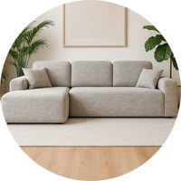 6 Seater Corduroy Sectional Sofa + Ottoman