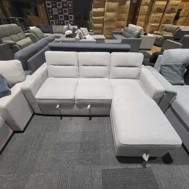 Brand new sectional pullout bed Convertible to queen size bed Adjustable back rest Reversible chaise Multiple colors availble 6 months warranty Delivery can be arranged Tax additional