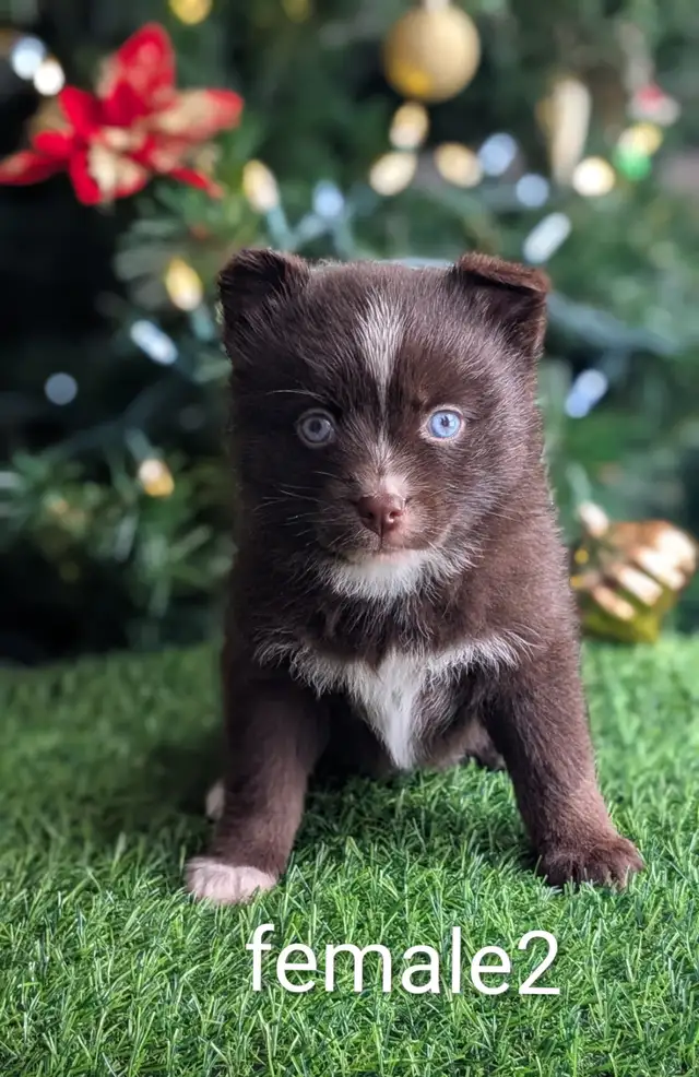 Hello, 3rd generation Beautiful blue eyed pomsky puppies , 1 male and 3 females are available for rehoming.