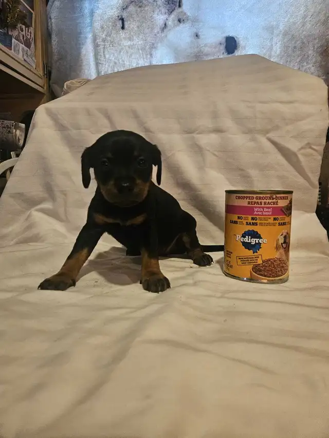 Ready to go. Black and tan. Paper trained. Great with kids. Very smart and easy to train. Really healthy and athletic breed. Dewormed and vet checked.