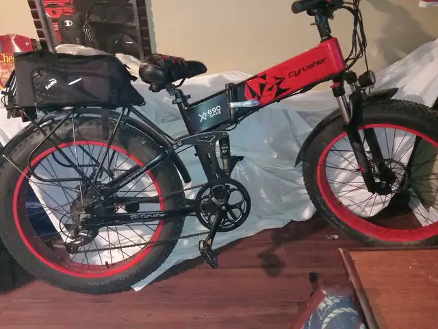 I'm selling my Cyrusher XF690 MAXS 500W folding fat tire ebike, a versatile and powerful electric bicycle perfect for both city commuting and off-road adventures. This ebike features a robust frame, fat tires for enhanced stability, and a long-lasting battery, making it ideal for riders of all levels. This ebike is in used condition. Price is just suggested and I'd happily negotiate other offers