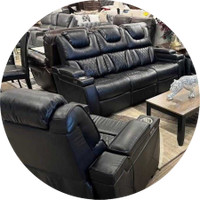 Upgrade your living space with this stylish black leather living room set! This used set includes a sofa, loveseat, and armchair, perfect for creating a cohesive and comfortable seating area. The sleek design and durable leather upholstery make it a great addition to any home. This set is in good condition, with some signs of wear.