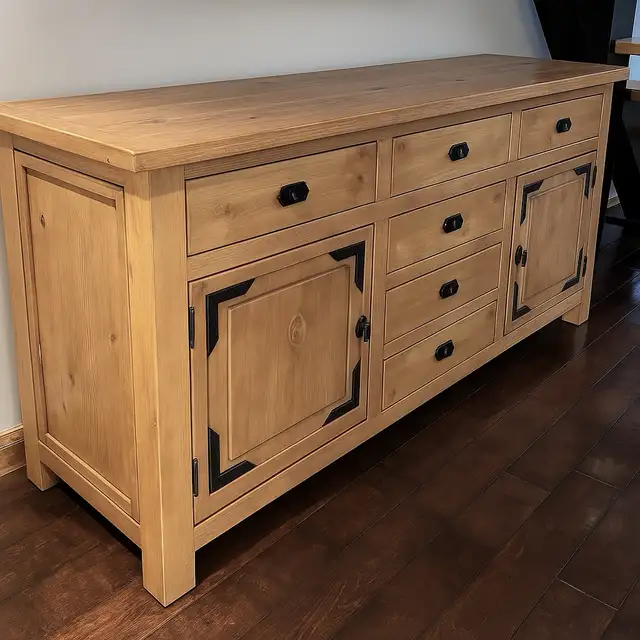 Newer mostly solid wood buffet. Would be great under a large tv or big piece of art.