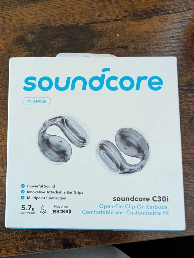 Anker Soundcore open ear, clip on earbuds. Customizable fit. Waterproof. 12mmx17mm drivers. Brand new sealed box. Great for Christmas gifting! Asking $50.