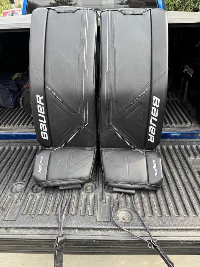 Bauer M5 Pro Intermediate Medium (31+1) goalie pads, used for 2 seasons total, in excellent shape with only minor wear in the typical spots, all straps in exceptional condition.