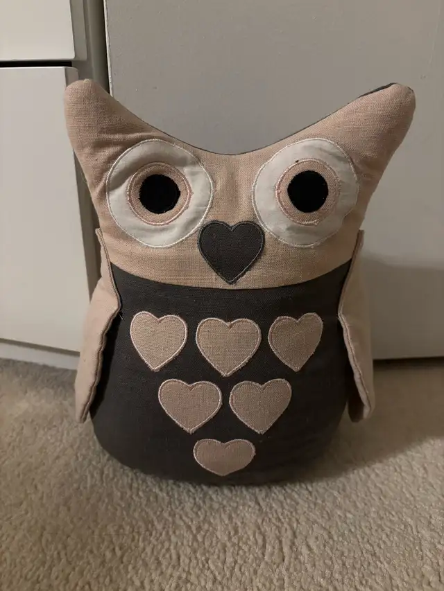 Owl door stop is not just a functional item, but also a decorative accent for any room. Featuring a cute design with heart embellishments, it adds a touch of whimsy to your home decor. This item has been previously owned and gently used.