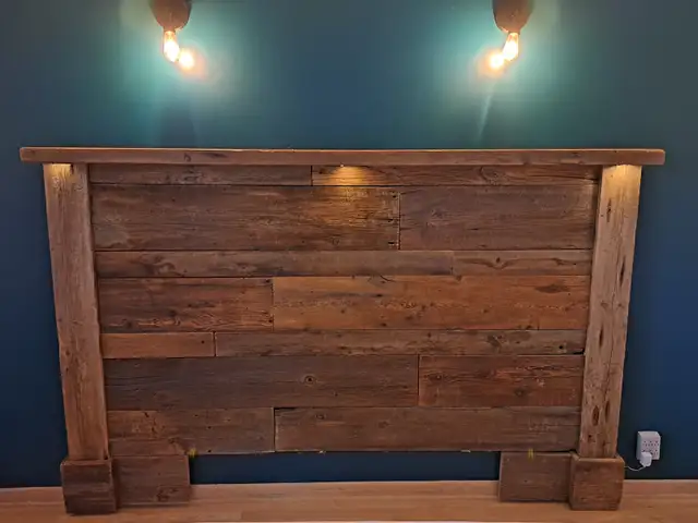 Tête de lit king 89 1/2" x 58" en bois avec 3 petites lumières intégrées.