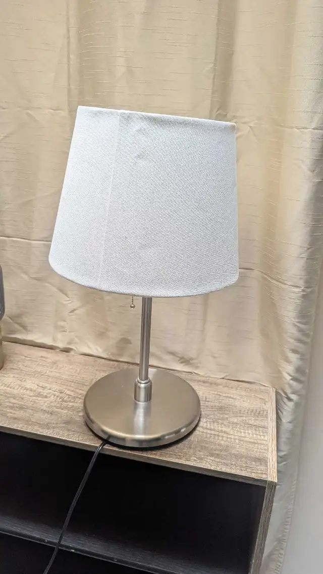 IKEA KryssMast table lamp in good condition. Nickel plated base with lamp shade and bulb. Available at Bonis Avenue near Sheppard and Kennedy.