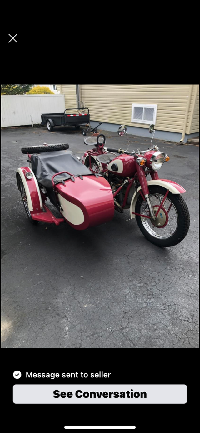 This 750cc Chang Jiang is a 55 year old motorcycle and side car that has just been tuned up with new battery installed, ready to ride. The original owner purchased the bike and parked it in his garage. The second owner had it tuned up, licensed and plated in Newfoundland. Located in Stephenville, NL. Less than 50 kms on bike