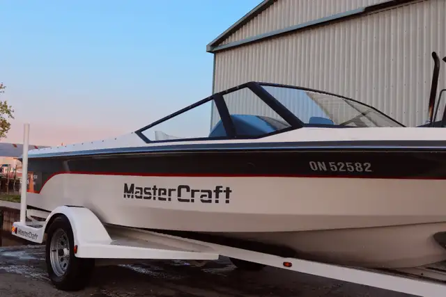 The interior has the original front captain's seat, and spotter seat along with the original rear "pod" seat that is removable. The engine box and side storage has been recovered to match. It has a few minor marks from when it was being used, but nothing major. The teak swim platform is in perfect condition and shows new. All gauges work as they should, speedo's are perfect. All new carpet, the boat has been polished and new decals have been applied.The trailer has been blasted and painted to original, and looks like new to match the boat. This is a must see, too many details to list. I have documented every inch of the boat with pictures, as I combed the boat to check and bring it back to like new condition. If you want a Mastercraft Ski boat at a fraction of the costs, this is the one. Please contact me for any questions. Located in Wallaceburg Ontario.