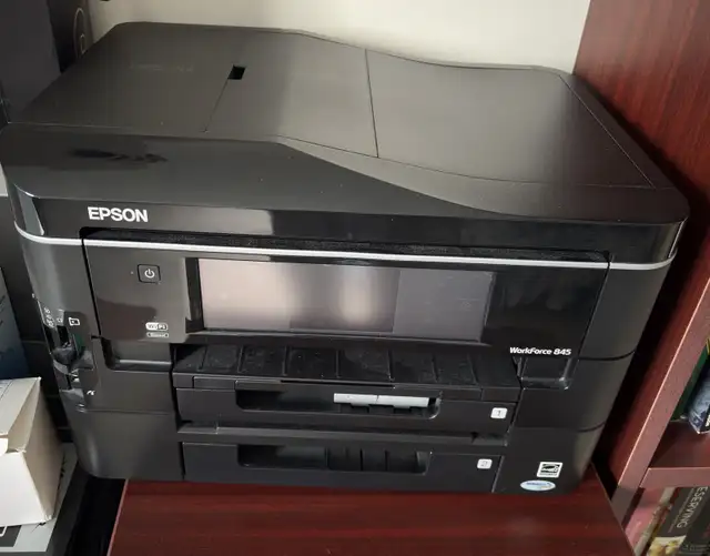 This is an Epson WorkForce 845 printer, known for delivering high-quality prints with vibrant colours and sharp text, perfect for both home and office use. Being sold in used condition.