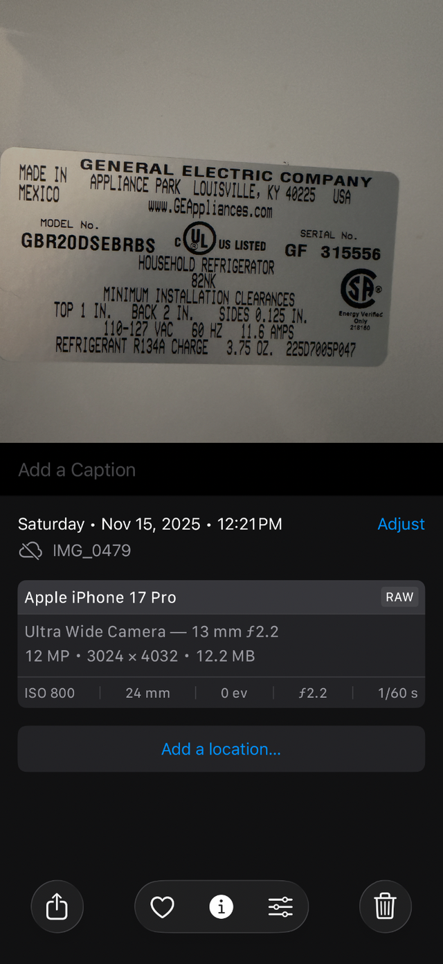 Model GE fridge with bottom freezer 30 inch width and 68 inch height