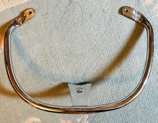 This is the chrome rail that your passenger grips. It does not have any scratches or dents. It is easy to attach.