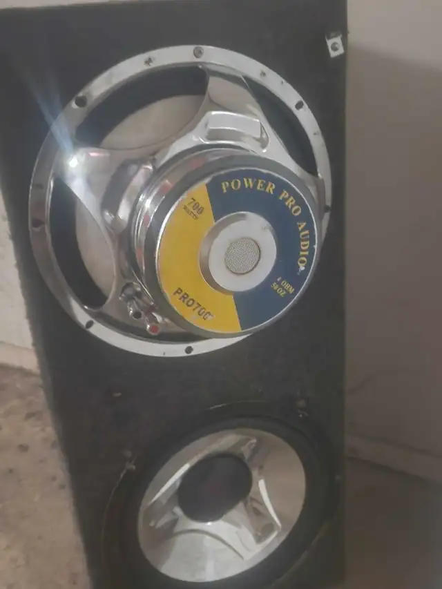 This Power Pro Audio speaker delivers powerful sound with 700 watts, 4-ohm impedance, and a 56oz magnet for deep bass and clear audio. This speaker has seen use and is in good condition. It would be ideal for a car audio enthusiast looking to enhance their sound system.