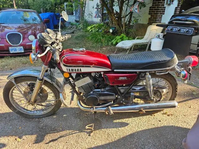 Selling a 1973 Yamaha RD350 with original paint. Has 15k mileage, and no rips/tears/dents. Has minor surface rust on chrome. Needs to 2 new tires, but is in running condition. I am posting this for my mother (Rose), she can be reached at 1-705-341-6435 to schedule viewings.