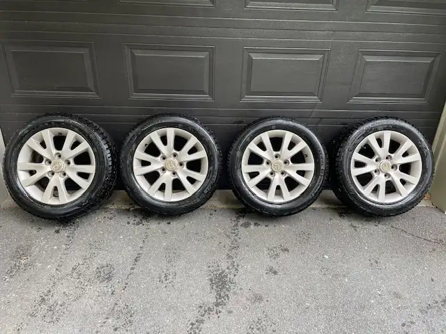 These General Altimax tires were purchased last fall and are being sold as we no longer own the vehicle. They came off a Mazda 3 and as you can see by the wear indicator, were very lightly used. The wheels are original Mazda alloy wheels completely refinished last fall.