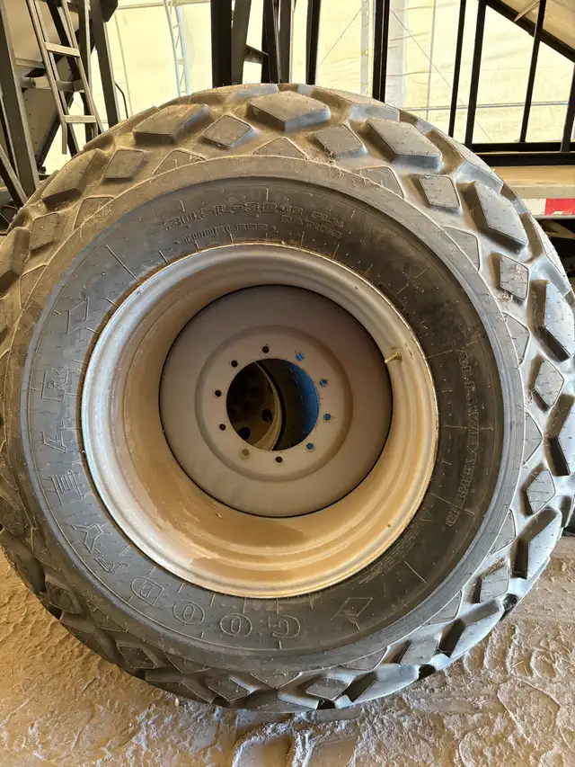 2 - Goodyear All Weather 30.5L-32 12ply diamond tread tires on rims for sale. 3/4” bolt hole size, 11” hub opening. 4” hole spacing. 10 bolt rim. All brand new stored under roof since purchased. $3750 each or $7000 for the pair.