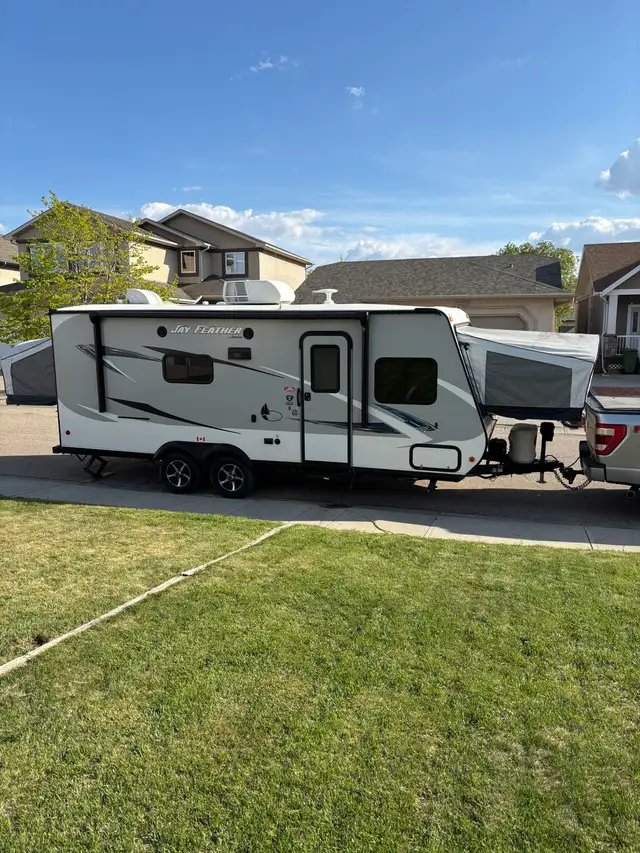 -sleeps 6-8 comfortably. Includes a queen and double bed in the tip outs, a jackknife sofa and a u-shaped dinette that converts to a bed.