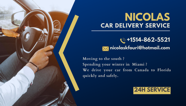 We drive your car from Quebec/Ontario to Florida. On conduit votre voiture du QC/ON aux États-Unis.