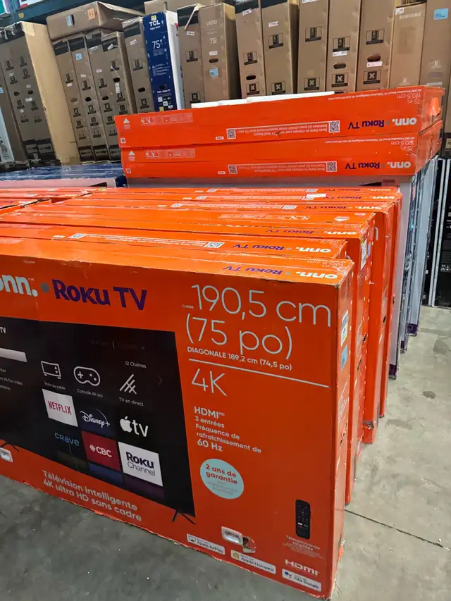 Je vends une toute nouvelle télévision intelligente Onn Roku de 75 pouces, idéale pour une expérience de visionnage 4K Ultra HD immersive. Cette télévision n'a jamais été utilisée et est livrée dans son emballage d'origine.
