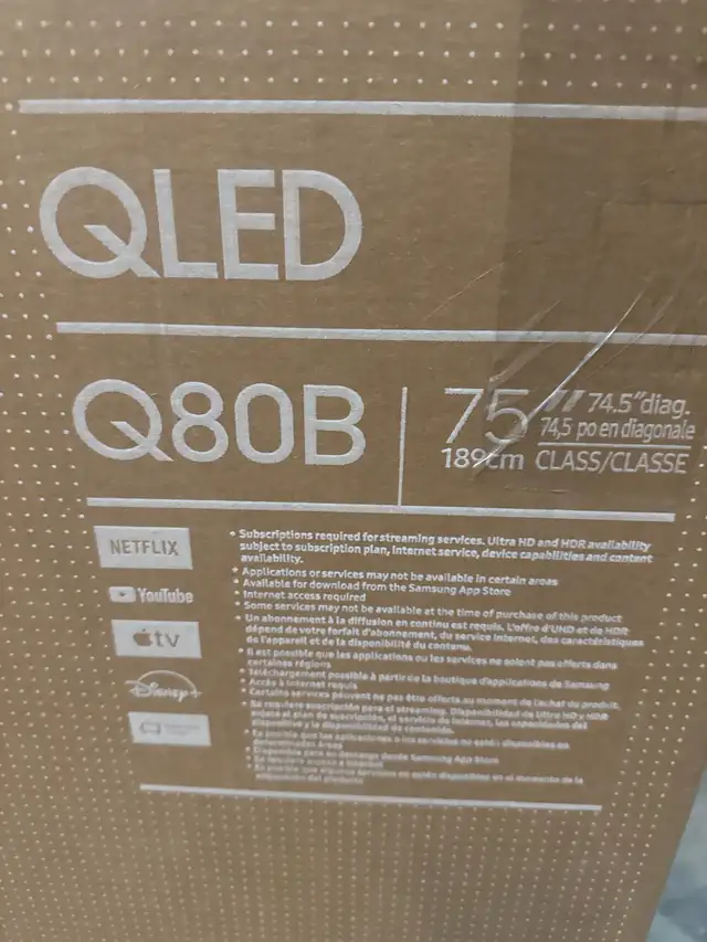 Voici un téléviseur intelligent QLED Samsung Q80B de 75 pouces offrant une qualité d'image époustouflante avec des couleurs éclatantes et un contraste profond. Étant un modèle d'occasion, il est en excellent état et prêt à améliorer votre expérience de divertissement à domicile.