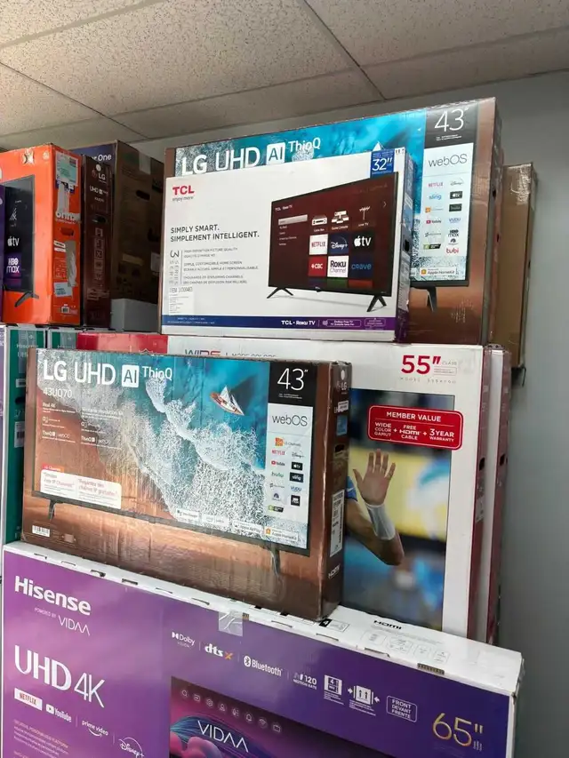 I'm selling a TCL 32-inch Smart LED TV, perfect for streaming your favourite shows with its built-in smart capabilities. This television has been gently used and is in excellent working condition. It would be great for a bedroom, dorm room, or smaller living space.