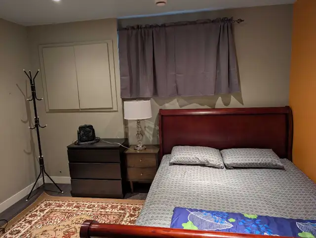 Description: A beautiful, well-furnished basement suite featuring two bedrooms (one with a double bed, the other with a queen) and a full washroom with a shower