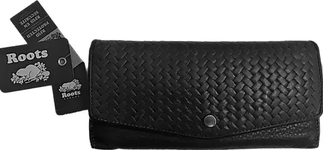 Our genuine leather Roots Canada Berry Wallet is made with a slim design that easily slips into your bag and features a main compartment, pockets and card slots to keep your essentials organized.