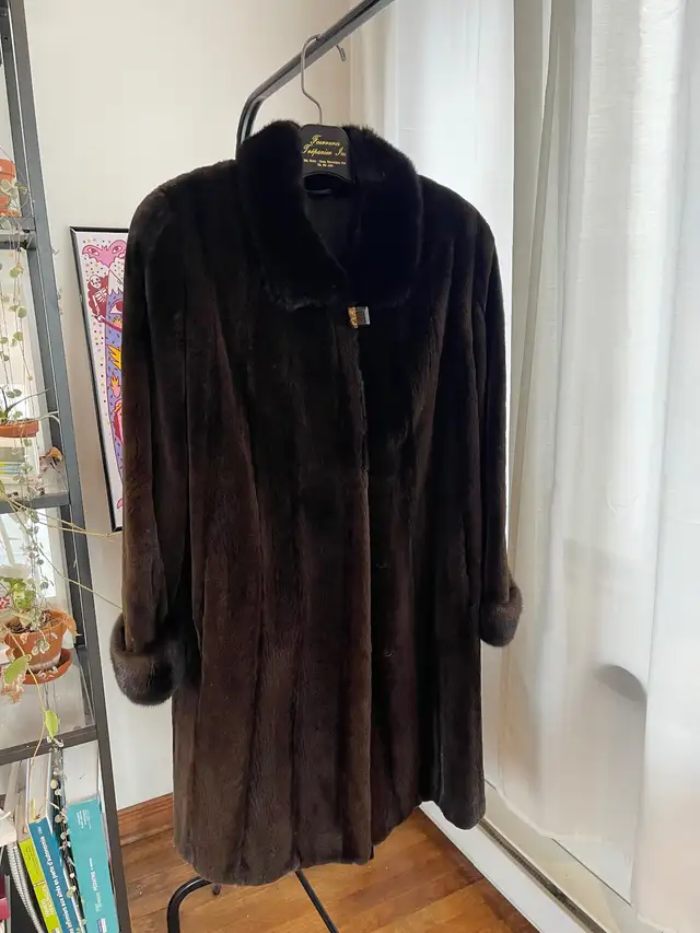 Manteau en vrai fourrure de vison vintage. Fait custom et entreposé par Fourrures Trépanier.